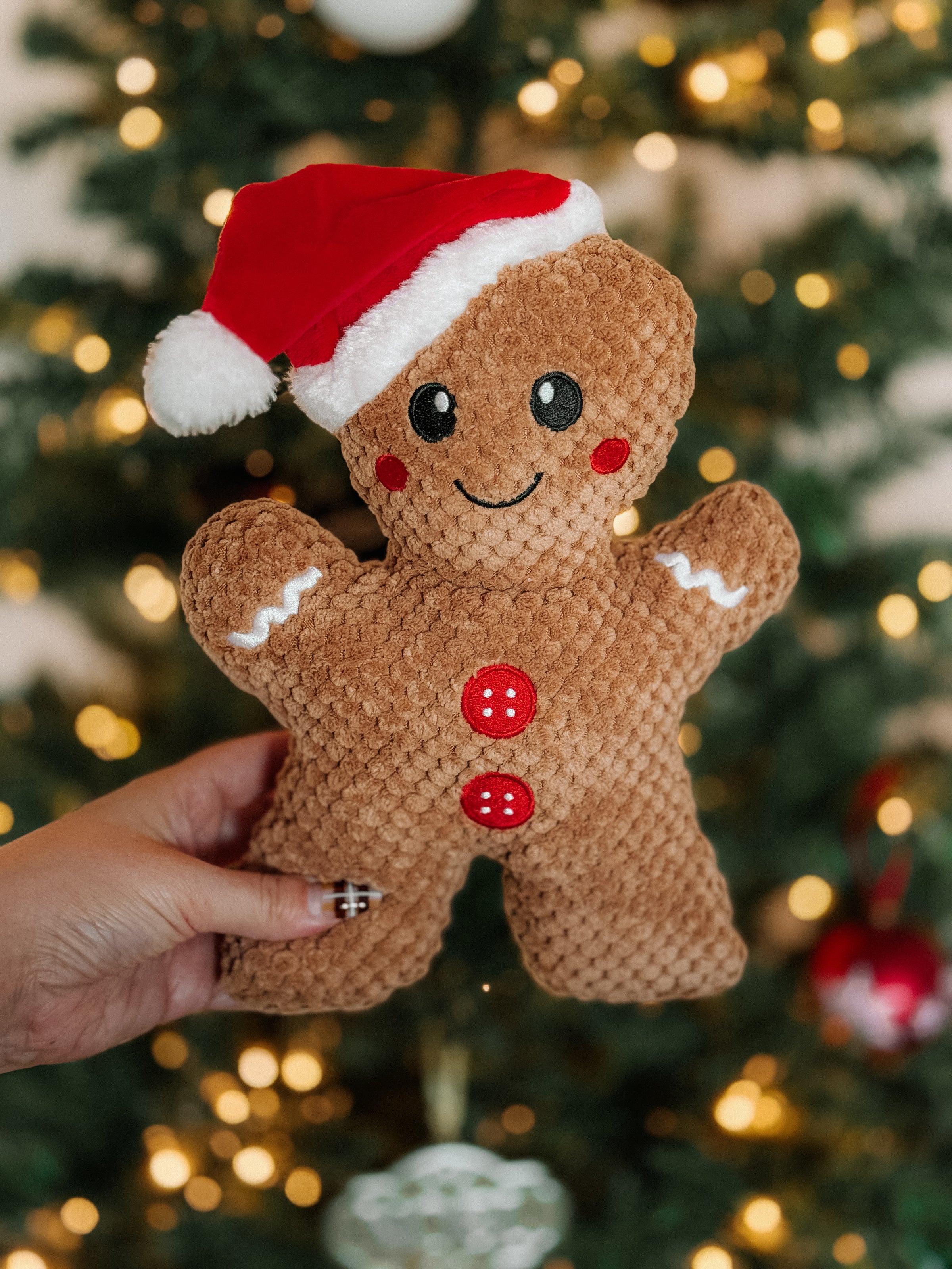 Treat your pup to some holiday fun with our adorable gingerbread man plush dog toy! This festive squeaky toy brings all the Christmas cheer and is perfect for dogs who love a soft, cozy toy to toss, cuddle, or proudly carry around. Made with durable, pet-safe materials, it’s a sweet addition to your dog’s winter toy collection.